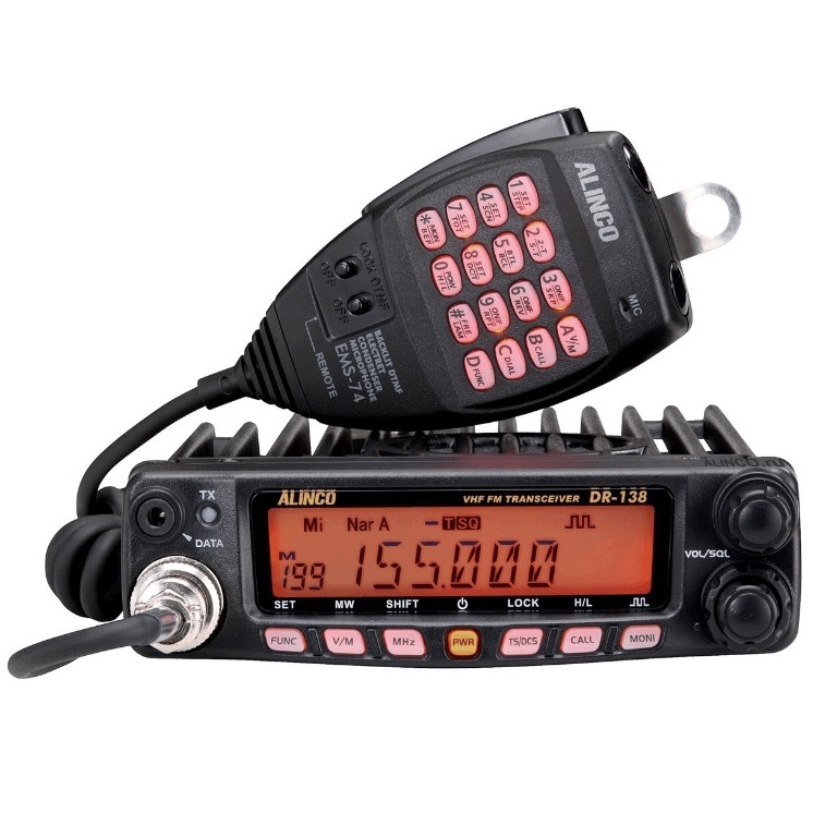 Radio Rig Alinco DR-138 dibuat dalam paket yang sama dengan model sebelumnya. Alinco DR-138 namun desain yang dimodifikasi dari panel depan. Seperti ada suplemen untuk dan DR-138, seperti compander, pengacak, kecerahan dan warna backlight display.